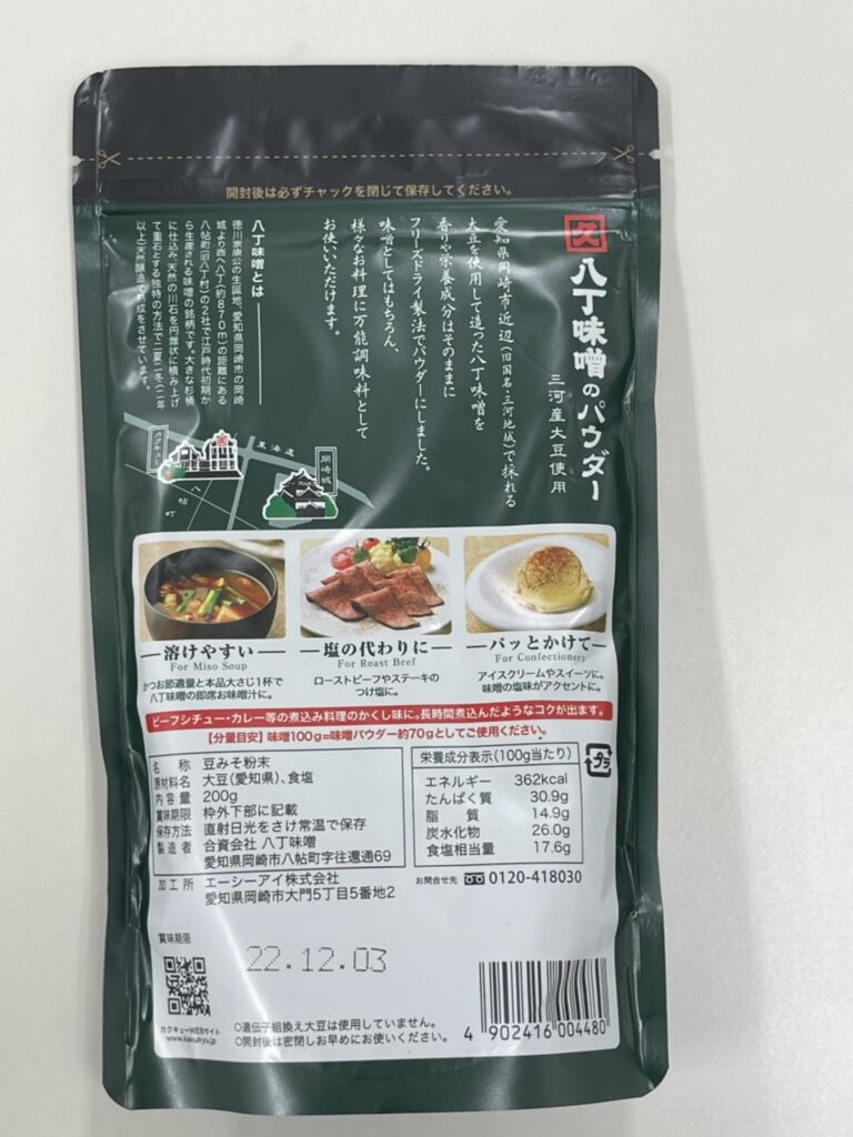 Mikawa soybean Hatcho Miso is powdered as it is so that Hatcho Miso can be easily used at home.