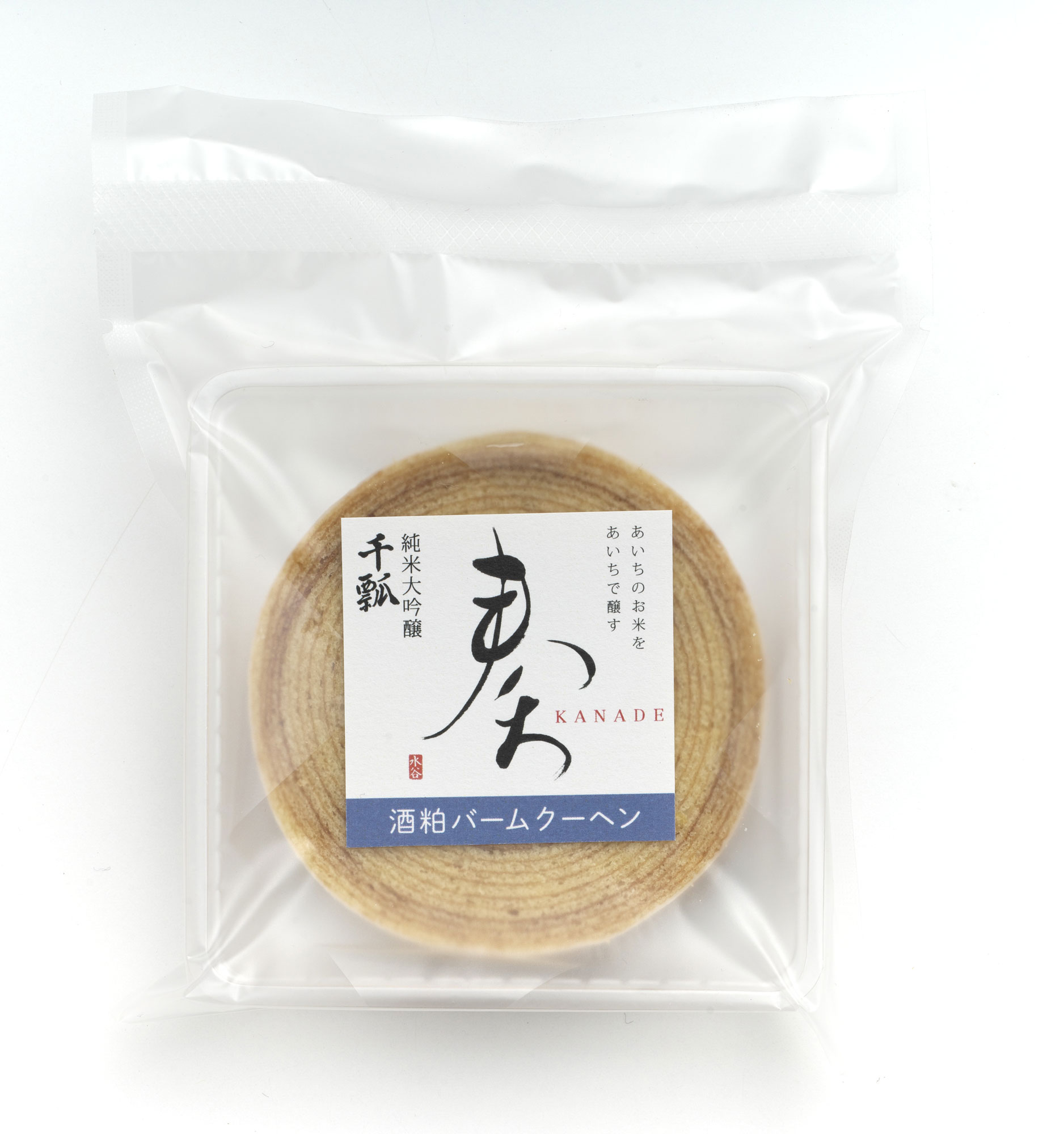 This baumkuchen is baked with sake lees of Junmai Daiginjo "Kanade" kneaded into it. It has been made to be elegant and moist with a hint of "Gin aroma" to please sake lovers.