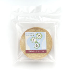 This baumkuchen is baked with sake lees of pure rice wine "Meguru" kneaded into it. The aroma of the sake lees makes it suitable for people who don't like sake.